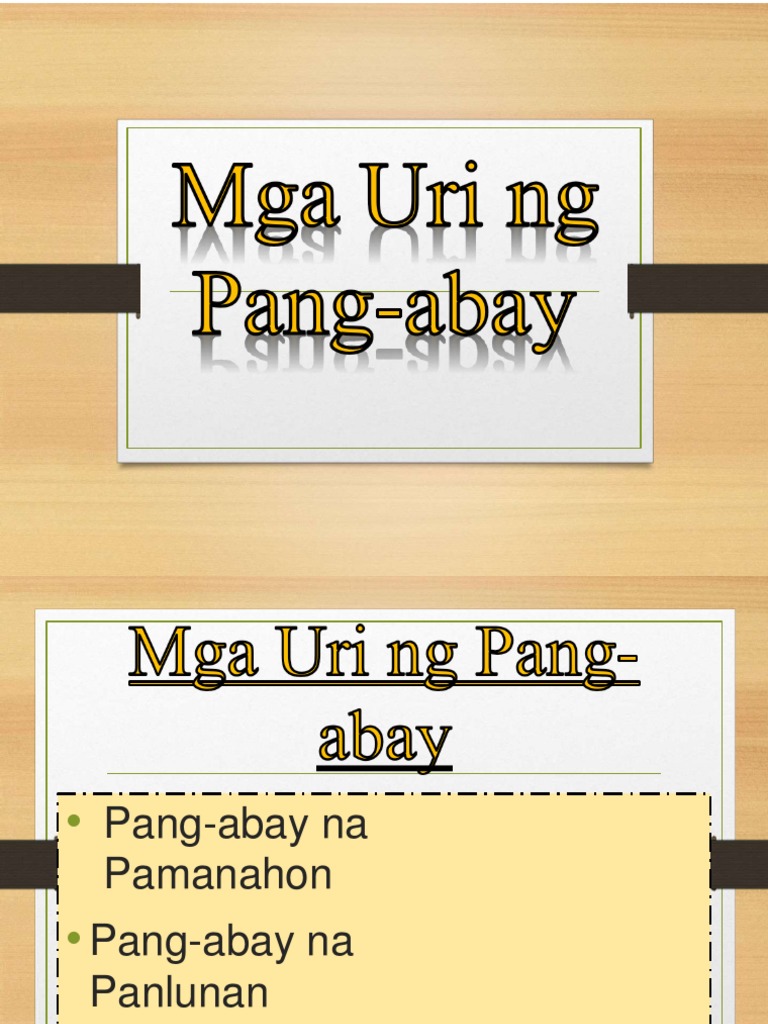 Pang-abay Pang-abay na Salita o Parirala Kahulugan Pang-abay na Kataga o Pamanahon Istruktural Ingklitik Panlunan Pansemantika Pamamaraan Pang-agam Kundisyunal Panang-ayon Pananggi Panggaano Kusatibo Benepaktibo Pangkaukulan Istruktural Ang pang-abay ay nakikilala dahil sa kasama ito sa pandiwa pang-uri o isa pang pang-abay na bumubuo ng. Quick lesson and free worksheets to help learners master the three primary kinds of adverbs uri ng pang-abay. Pang-abay Pang-abaynaSalita o Parirala Kahulugan Pang-abaynaKataga o Ingklitik Pamanahon Istruktural Panlunan Pansemantika Pamamaraan Pang-agam Kundisyunal Panang-ayon Pananggi Panggaano Kusatibo Benepaktibo Pangkaukulan.
