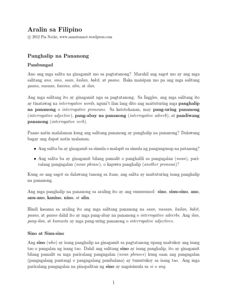 Adverb adverb of time adverb of place pang abay panlunan. This 6-page lesson deals with the Filipino interrogative pronouns sino sinu-sino ano anu-ano kanino kani-kanino and alin. Ginanamit din sa paglalarawan ng pang-uri.